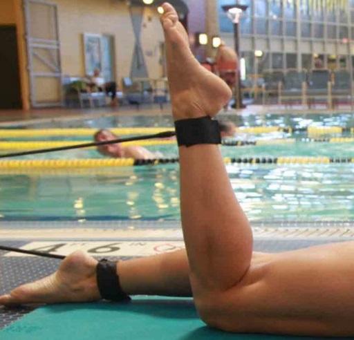 V bazéne StrechCordz with Leg Straps pomáha zlepšiť techniku záberu rukami a tela počas plávania. Jeden koniec trenažéra sa prichytáva na okraj bazéna pomocou slučky, druhá časť sa fixuje o nohu. Celý čas budete plávať pri okraji bazéna, a tréner môže ľahko spozorovať vaše chyby a opraviť ich.