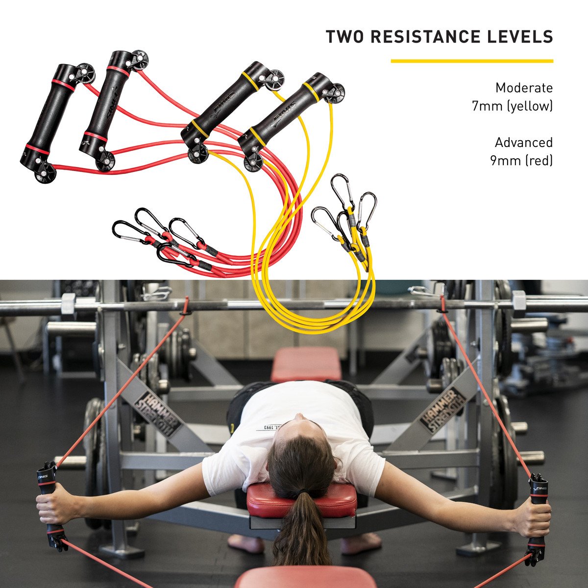 ZWEI WIDERSTANDSSTUFEN: 7 mm (gelb) und 9 mm (rot)