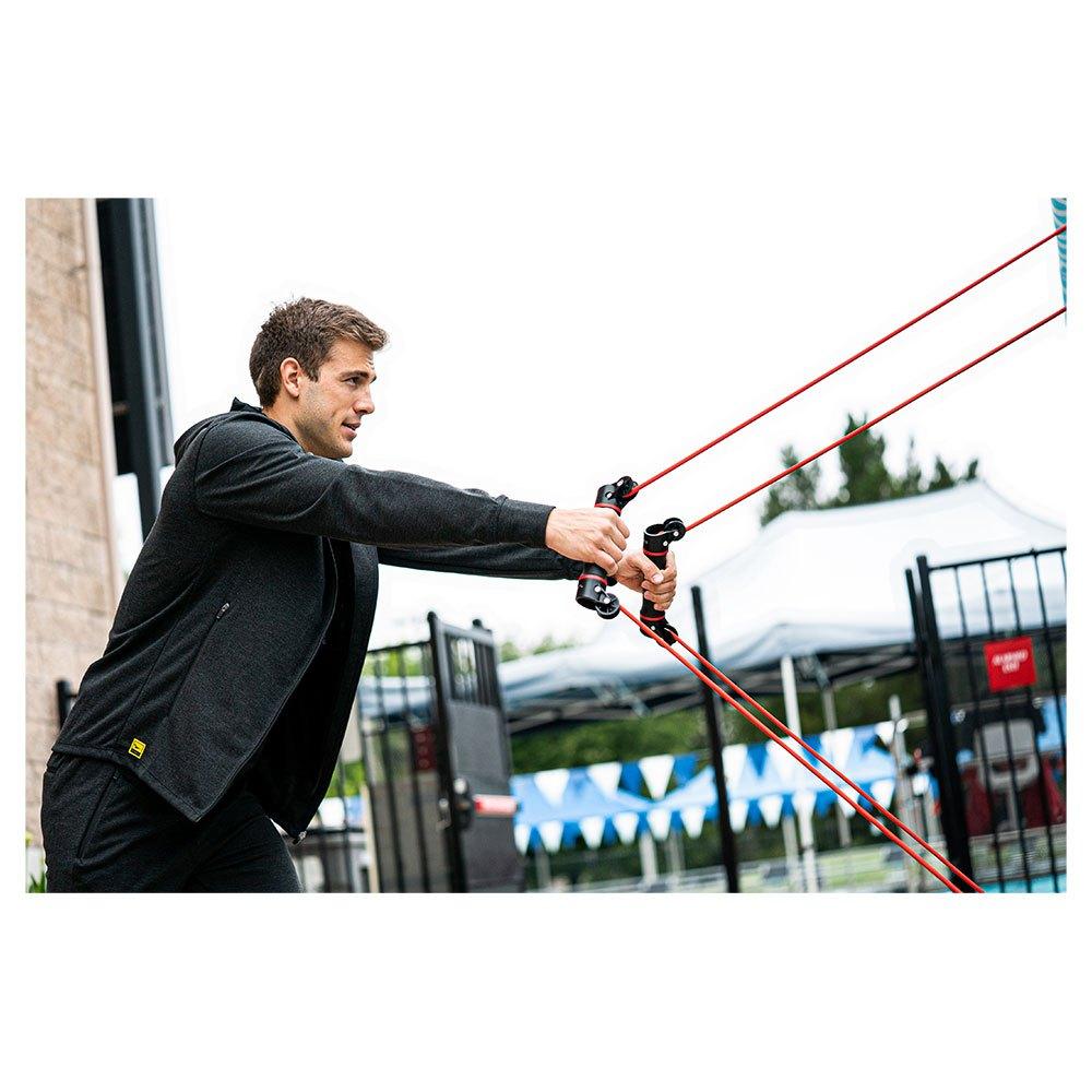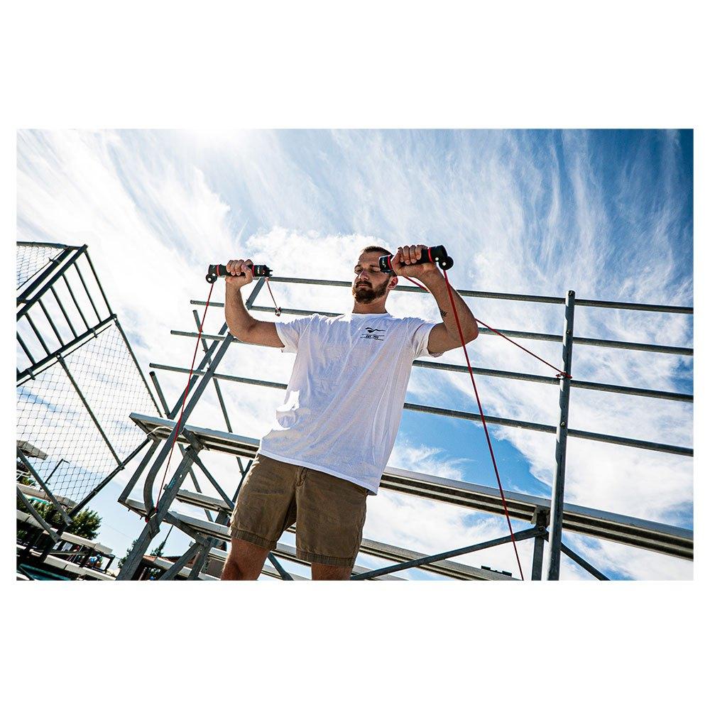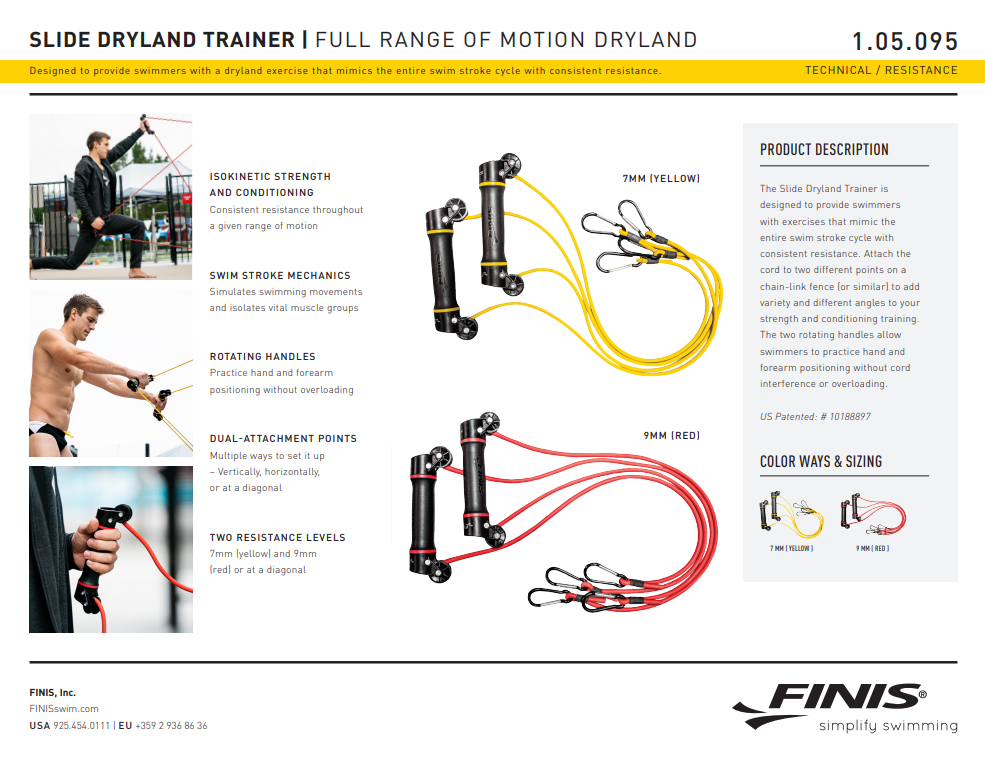 Die Slide Dryland Trainer sind Gummibänder, die entwickelt wurden, um Schwimmern Übungen zu ermöglichen, die den gesamten Schwimmzyklus mit konstantem Widerstand nachahmen. Befestigen Sie die Gummibänder an zwei verschiedenen Punkten, um Abwechslung und verschiedene Winkel in Ihr Kraft- und Konditionstraining zu bringen. Zwei drehbare Griffe ermöglichen es Schwimmern, die Hand- und Unterarmposition störungsfrei und ohne Überlastung der Schnur zu üben.